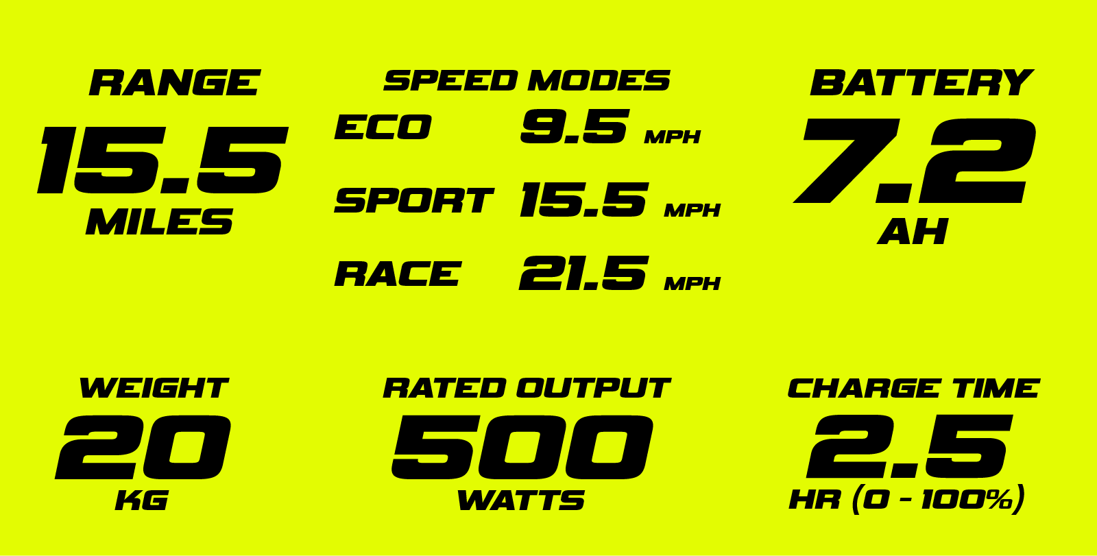 Top Speed: 9.5 mph / 13.5 mph / 18.5 mph